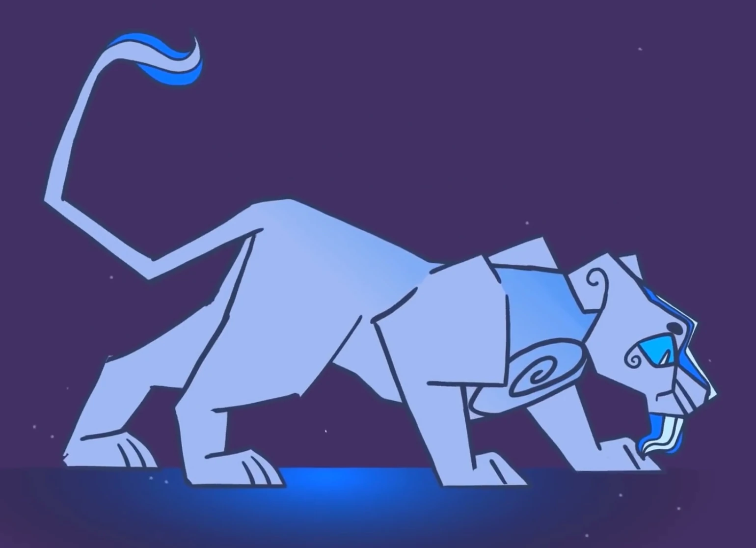 Cansu is a soft dark blue color with a dark and light blue stripe on her nose that trails up to her forehead. She also has a swirl on her chest and dark blue stripes running down her lighter blue muzzle. She has dark blue eyes, and is very large compared to a normal lioness.